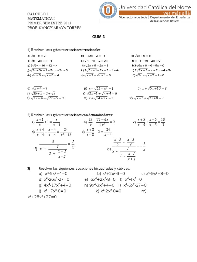 1 Resolver Las Siguientes Ecuaciones Irracionales Guia 3
